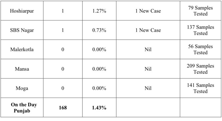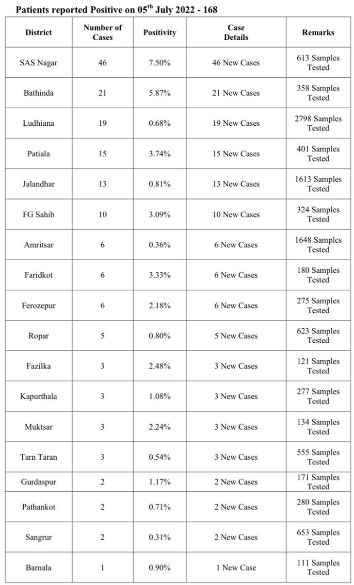 continues in Mohali, adjacent to Chandigarh. On Tuesday, 46 new patients were found here. 21 new patients have been found in Bathinda and 19 in Ludhiana. Yesterday 168 cases were found in the state. The positivity rate stood at 1.43%. During this, a patient died in Ropar. On Tuesday, 11,757 were tested by taking 11,634 samples.